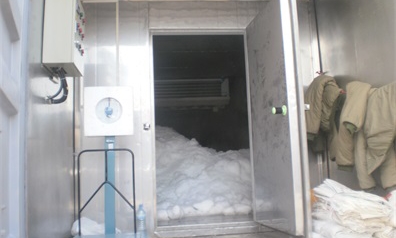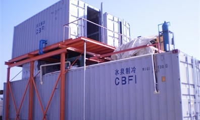 該項(xiàng)目是集裝箱式板冰機(jī)及儲(chǔ)冰庫一體系統(tǒng),集裝箱式系統(tǒng)的特點(diǎn)是運(yùn)輸及安裝方便,集裝箱內(nèi)設(shè)備可預(yù)先裝好,現(xiàn)場只需安裝外部配件及管路。如有需要,經(jīng)過簡單拆除和再安裝,可以在短時(shí)間內(nèi)轉(zhuǎn)移全套設(shè)備。