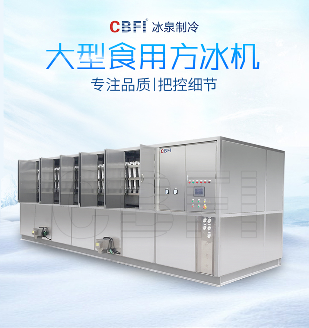 大型食用方冰機(jī),是一種規(guī)模化生產(chǎn)食用方冰的制冰設(shè)備,所生產(chǎn)的方冰干凈衛(wèi)生、晶瑩剔透,廣泛應(yīng)用于酒店、酒吧、餐廳、便利店、冷飲店等需要方冰的場所。