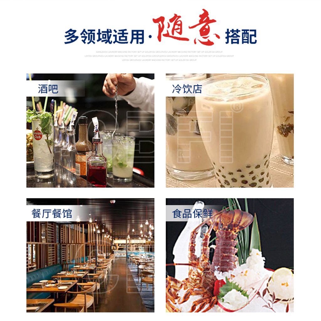 遍布于賓館、酒店、酒吧、宴會廳、西餐廳、快餐店、便利 店以及冷飲店等需要冰塊的地方,滿足每一位需要顆粒冰的客戶。