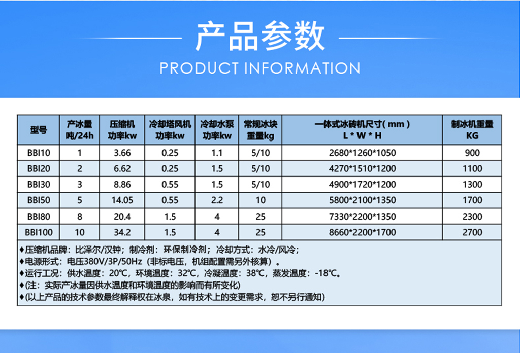 廣州冰泉是大型氟制冷冰磚機(jī)行業(yè)開(kāi)拓者,研發(fā)制造的全球第一臺(tái)日產(chǎn)冰量100噸的大型氟制冷冰磚機(jī)2010年在馬來(lái)西亞成功運(yùn)行。現(xiàn)單臺(tái)(套)設(shè)備日產(chǎn)冰量從1噸~200噸,可以滿足不同客戶(hù)需求。