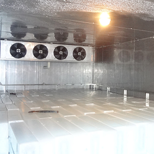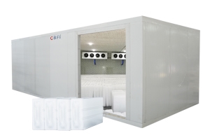 對于集中販售冰塊和用冰周期不定以及擁有大型噸位制冰機的用戶,配置低溫儲冰庫是必須的。制冰機提前工作,將做好的冰集中儲存在冷庫中,可以提高經(jīng)濟效益。低溫儲冰庫儲存溫度要求在-10℃以下。