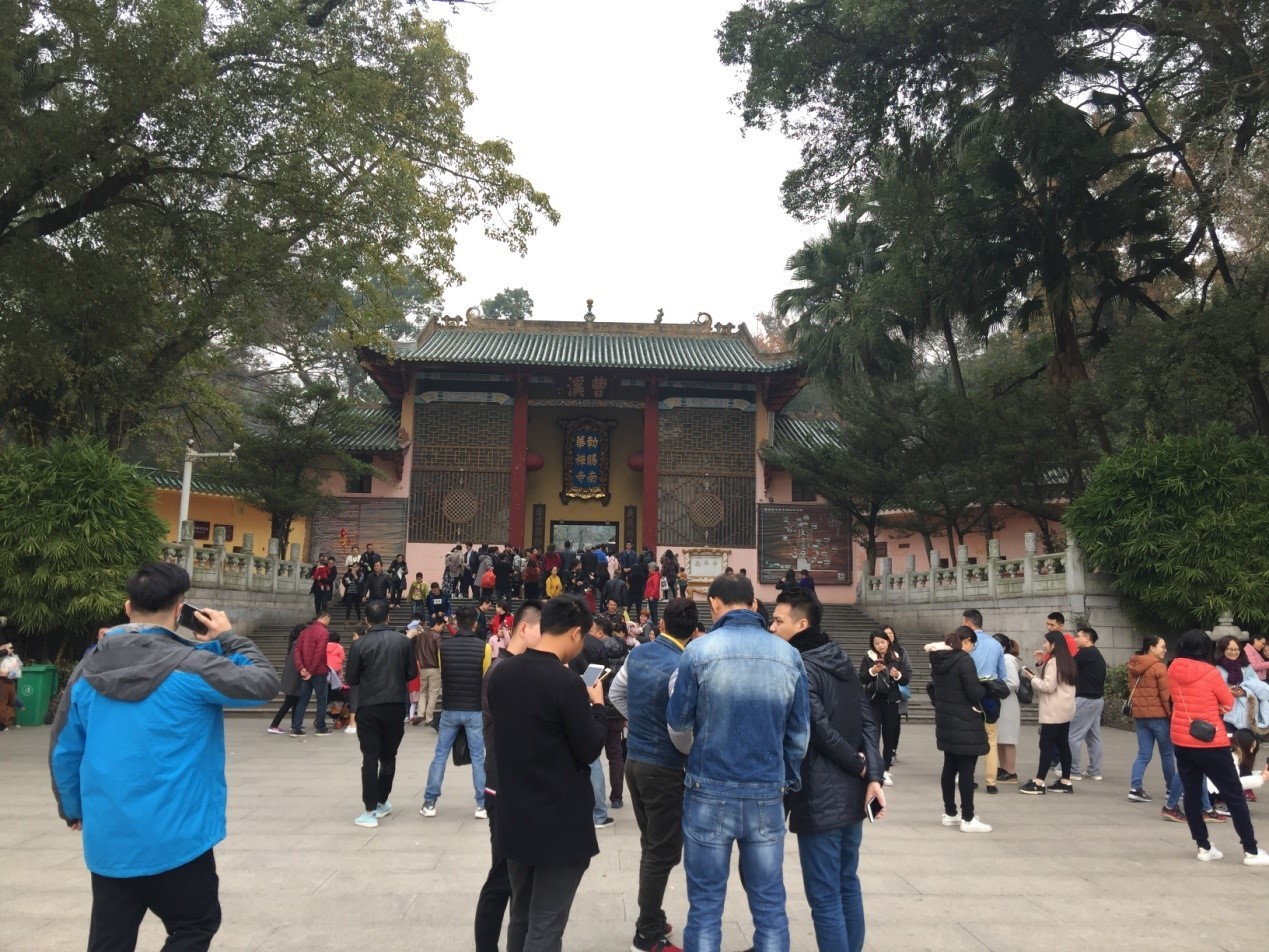 經(jīng)過近三個小時的車程,大家來到了本次行程的第一站,也是最重要的一站,南華寺,南華寺始建于南北朝梁武帝天監(jiān)元年(公元502年),迄今已有1516年歷史,是六祖惠能禪宗宏揚(yáng)“南宗禪法”的發(fā)源地,里面陳列著鎮(zhèn)寺之寶六祖真身,擁有這樣顯赫的過往,南華寺不僅是最早一批被國務(wù)院定為漢族地區(qū)佛教全國重點寺院,而且有嶺南禪林之冠的美譽(yù)。
