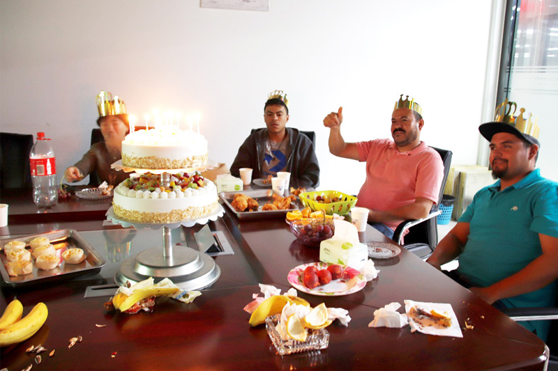 21日下午6點左右,會議室早已放置好各種美味的食物,隨后壽星們陸續(xù)進場。下午6點10分,生日會正式開始,活動由人事曹小姐主持,她的幽默詼諧,讓會場掌聲不斷。接著是大家的自我介紹環(huán)節(jié),大家依次介紹了自己的性格、愛好和生日感言。