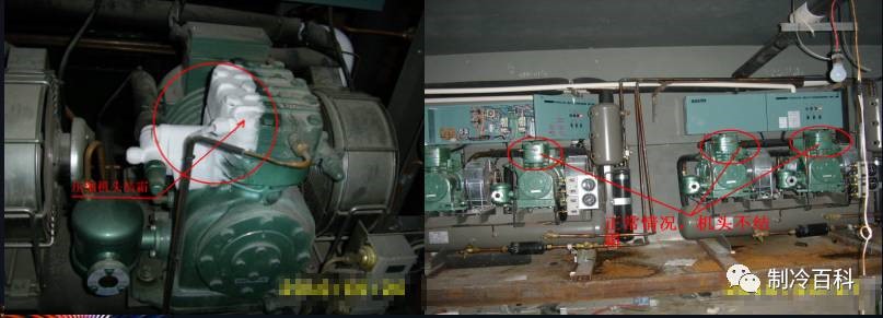 蒸發(fā)器結(jié)霜會使冷卻能力降低,為防止這種現(xiàn)象,需減少進(jìn)出庫次數(shù),進(jìn)出庫需隨手關(guān)閉庫門,結(jié)霜多時,必須進(jìn)行除霜。請按冷凍機(jī)組里安裝的除霜定時器或冷庫微電腦控制器的設(shè)定進(jìn)行。結(jié)霜太多會導(dǎo)致機(jī)頭回液,嚴(yán)重時會產(chǎn)生液擊,導(dǎo)致壓縮機(jī)頭損壞。