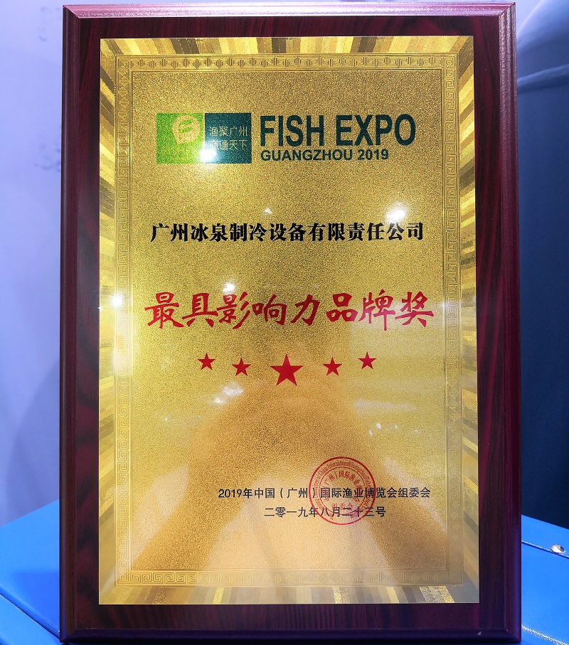 通過廣州國際漁博會組委會專家嚴(yán)格審評,一致認(rèn)為冰泉制冷在制冰設(shè)備行業(yè)內(nèi)影響力較大,業(yè)績突出、社會反響良好,評選冰泉制冷為本次漁博會“最具影響力品牌獎”。
